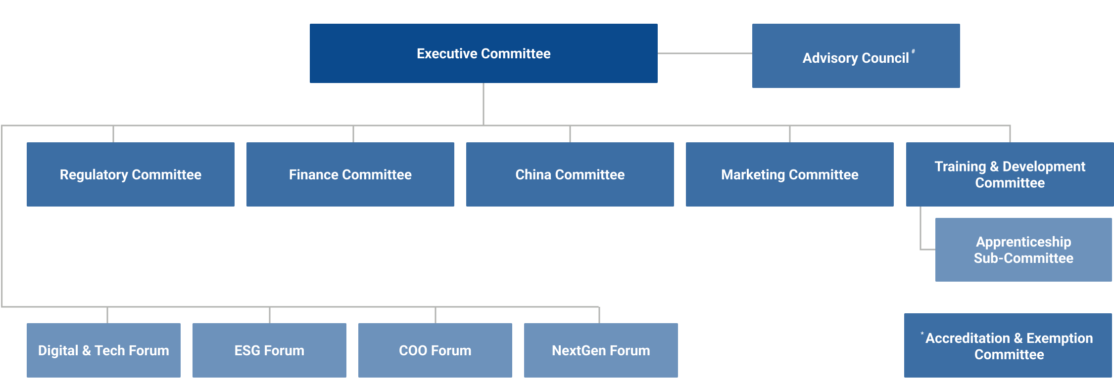 *The Accreditation and Exemption Committee is an independent committee and does not report to the Executive Committee. The Committee comprises representatives with relevant knowledge and experience, including seasoned former PWM practitioners, academics and other relevant professionals.