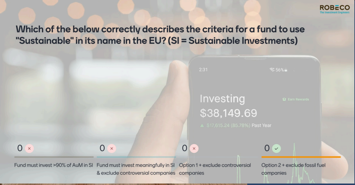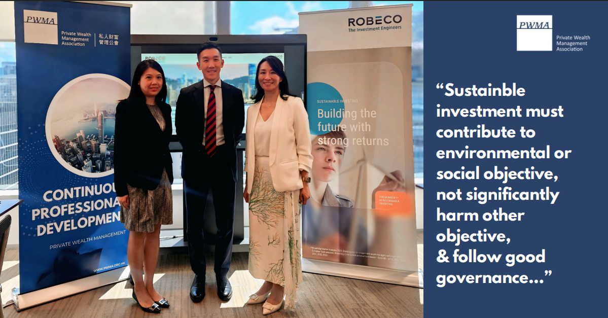 We had the pleasure of co-hosting a fun and insightful training session on sustainable investing with our member firm Robeco. We were delighted to welcome Xuan Sheng Ou Yong, Robeco’s Sustainable Investing Client Portfolio Manager and resident expert, who flew in from Singapore to lead the session.